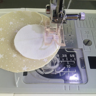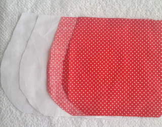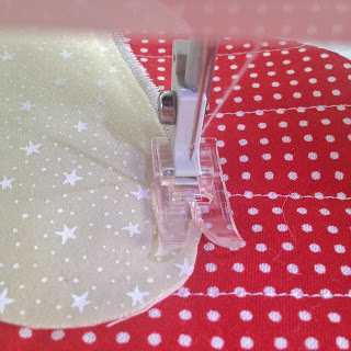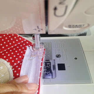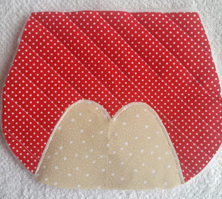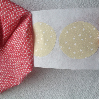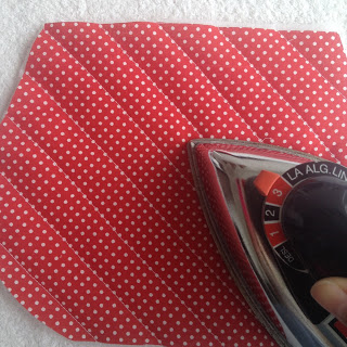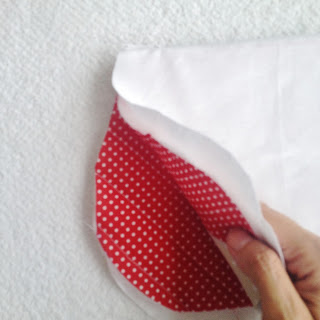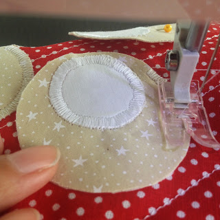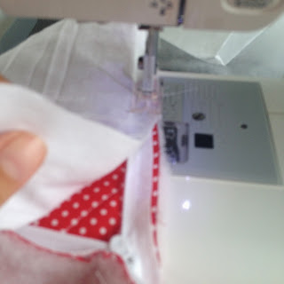 Agora costure o maior no tecido vermelho de bolinha;