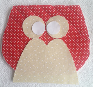 Faça o mesmo com os olhos da coruja. Sempre que for entretelar um tecido é importante colocar outro tecido ou um pedaço de papel para que não grude no ferro;
