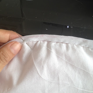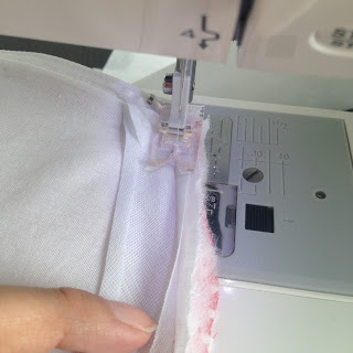 Para dar o acabamento interno costure viés branco em uma lateral;