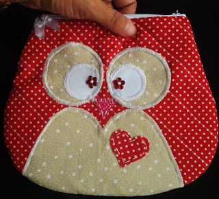 Carteira de coruja de tecido com zíper é uma alternativa diferente, também usada como necessaire dá para guardar vários objetos pequenos.