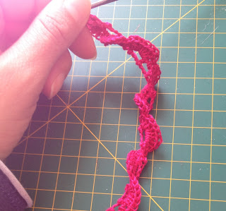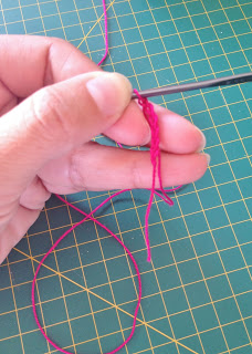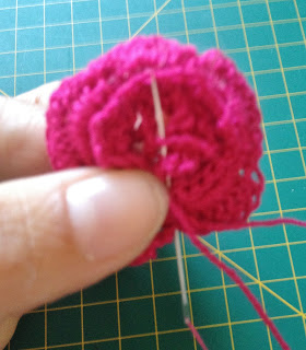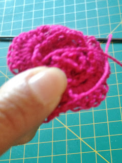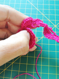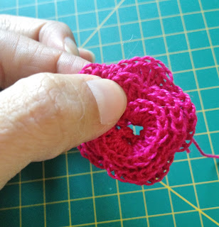 Terminado você vai deixar um pedaço de linha sobrando, começa a enrolar em circulo como se fosse uma flor;