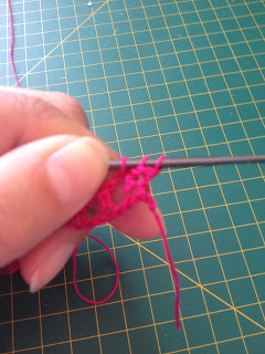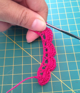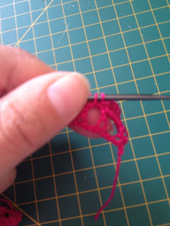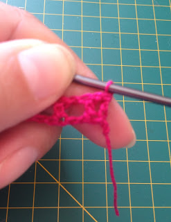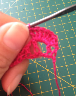 Ponto alto, correntinha, pulo duas correntinhas e puxo o ponto alto novamente;