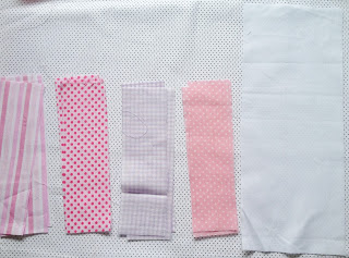 Recorte retalhos de tecidos com estampas diferentes 17×5 cm, são 18 retângulos;