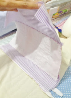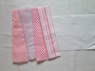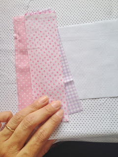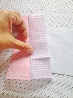 Pegue o tecido branco de 11,5×28 e os tecidos estampados;