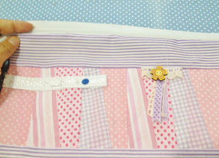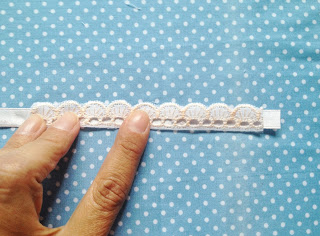Coloque a fita por baixo e a renda por cima junte as partes;