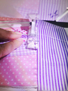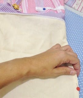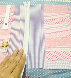 Agora alfinete o forro da bolsa em cima do zíper e passe a costura;