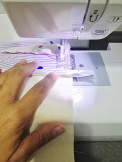 Alfinete o primeiro e passe a costura na lateral direita do lado direito;