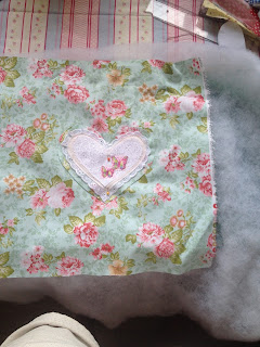 Coloque a manta acrílica embaixo do tecido da capa e passe a costura em volta do coração;