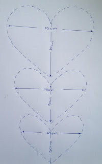 Recorte três corações conforme as medidas abaixo ou conforme as medidas da sua agenda para que fiquem centralizados;
