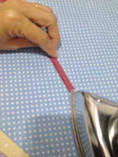 Dobre ao meio depois as extremidades como se fosse um viés e vinque com o ferro;