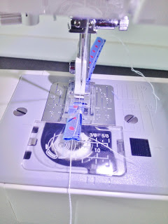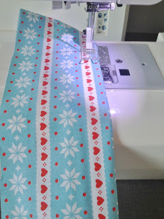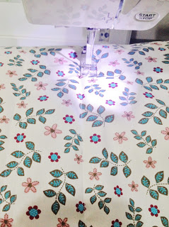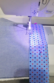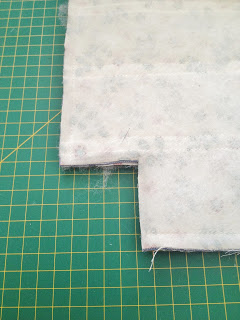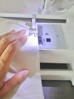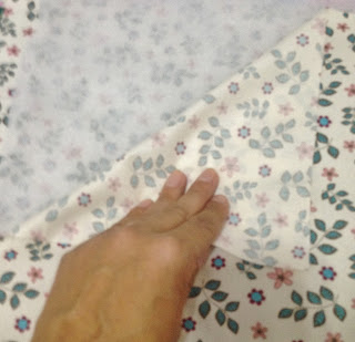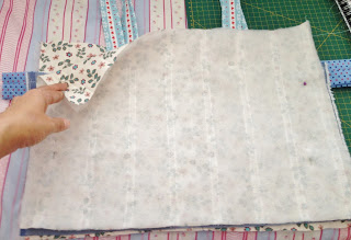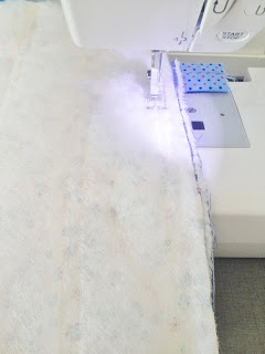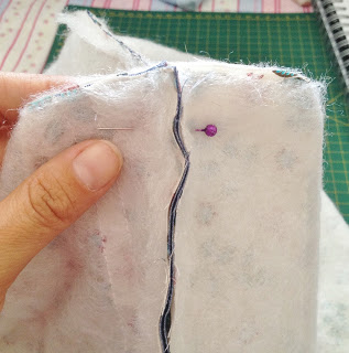 Passe uma costura na vertical com distanciamento e 5cm entre as costuras para segurar o tecido na manta;