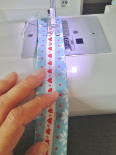 Passe um viés na parte superior ou deixe uma sobra do forro para fora dobre e alinhave;