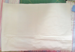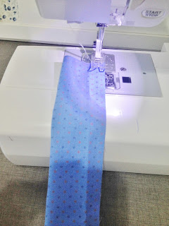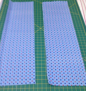 Recorte 2x tecido liso na cor azul clara 43x25cm para a parte inferior dobre ao meio e alfinete a faixa na parte superior;