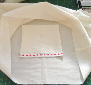 Costure as laterais e faça o recorte de 5cm na base do forro da mesma forma que foi feita na bolsa;