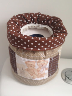 OBSERVAÇÃO: Esse trabalho acompanhei pela internet, vou passar o endereço do vídeo, porém precisei mudar algumas medidas, a largura externa eu aumentei uns três centímetros, pois o papel higiênico que uso é um pouco mais largo, no vídeo foi utilizada fita, eu precisei usar o elástico pois a altura acabou ficando muito curta, na próxima aumentarei pelo menos uns três centímetros para poder utilizar fita, mas gostei do mesmo jeito.