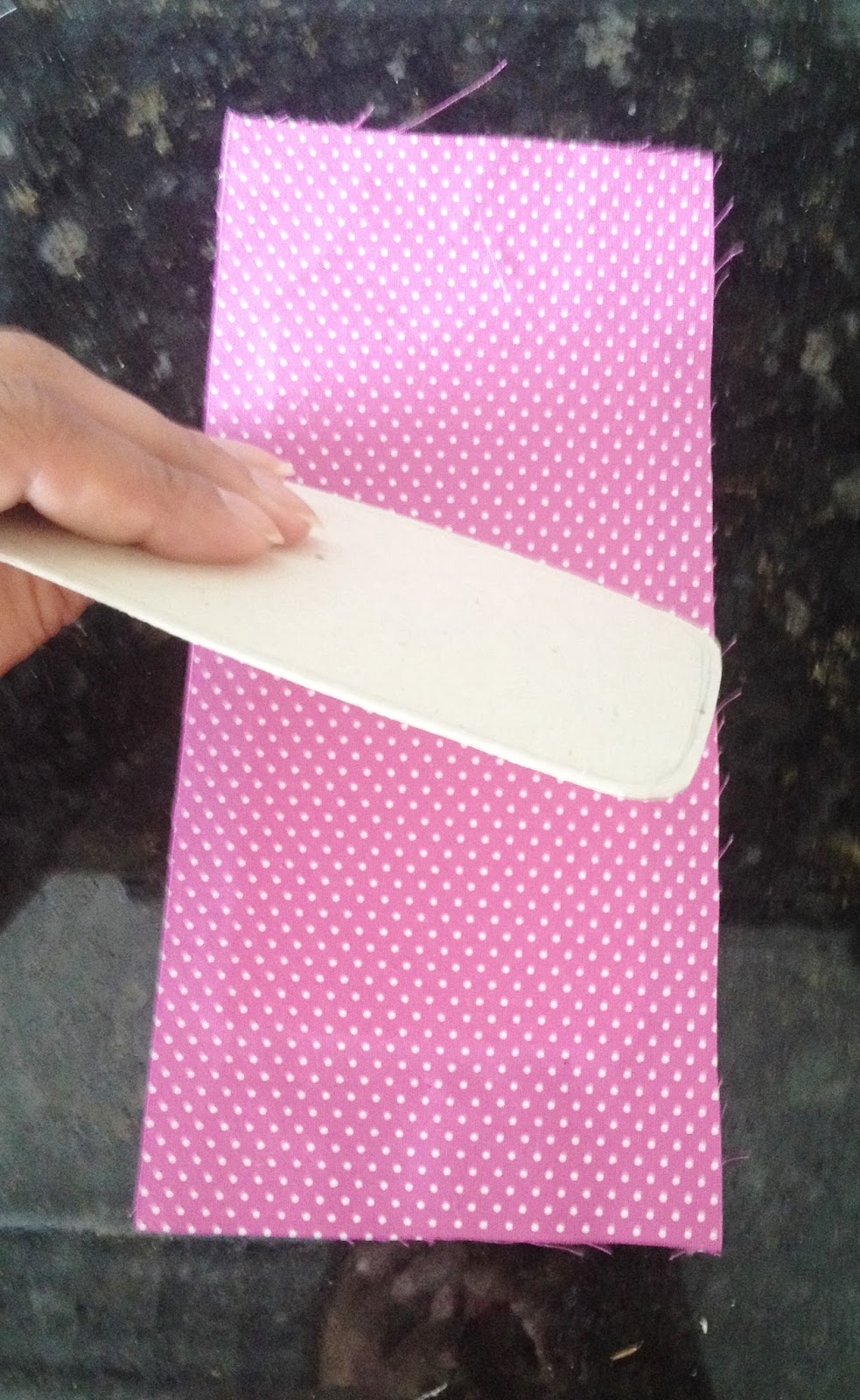 O pepelão que foi recortado pela metade dê uma chanfrada e cole no tecido;