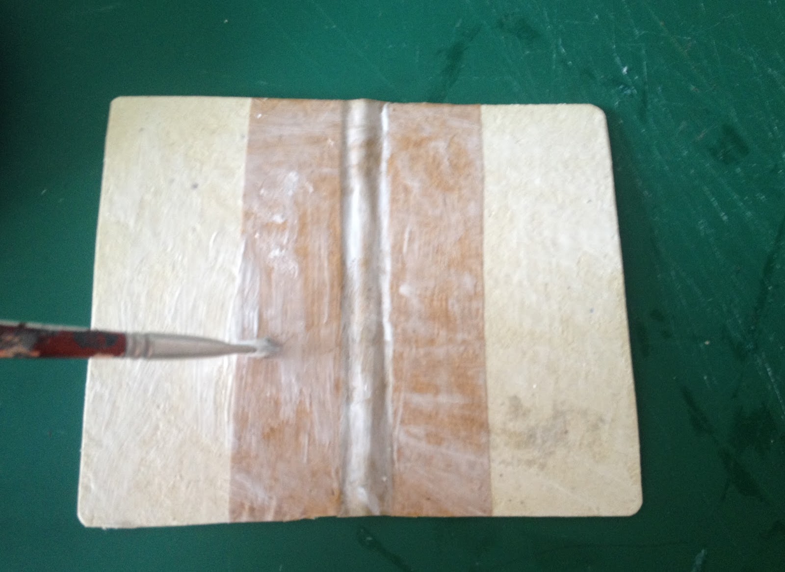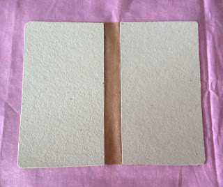 Pegue um pedaço de papel craft que servirá para unir as duas bandas da capa;