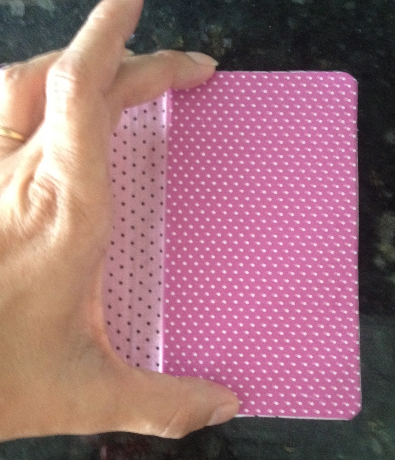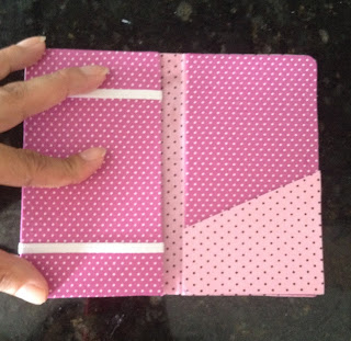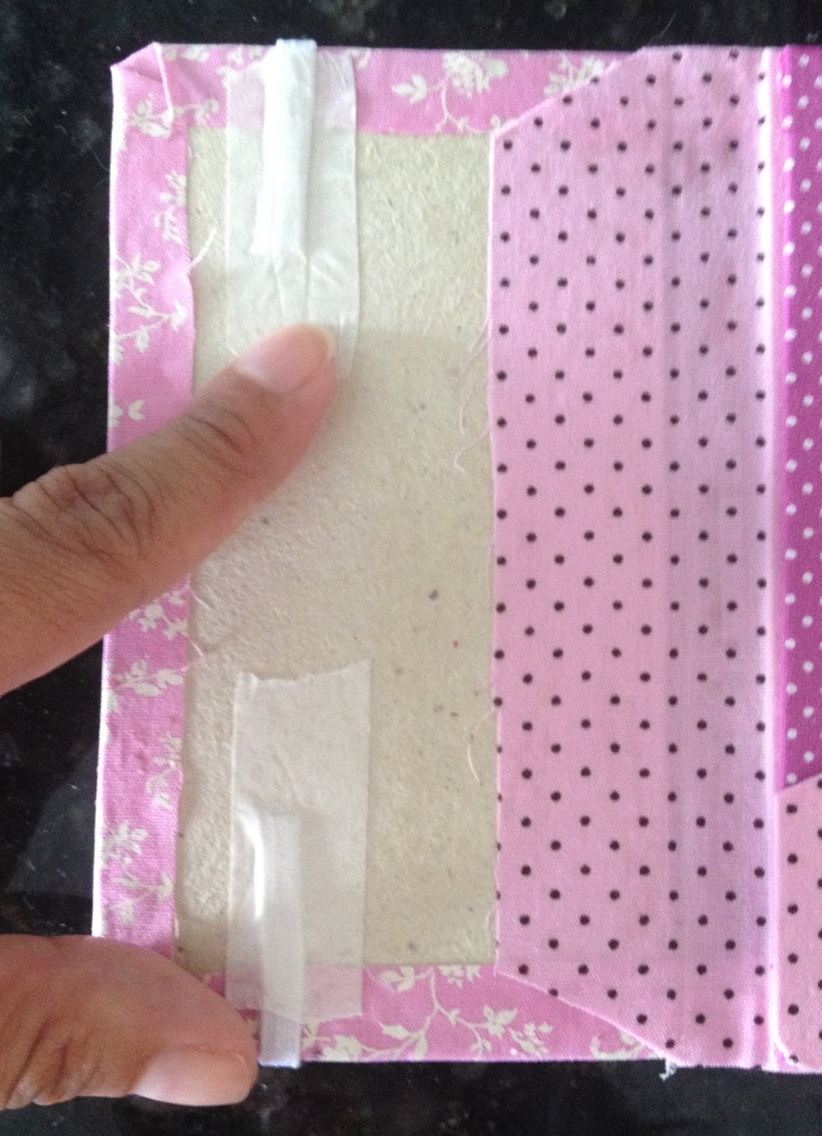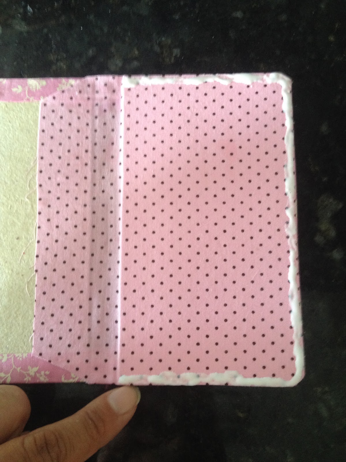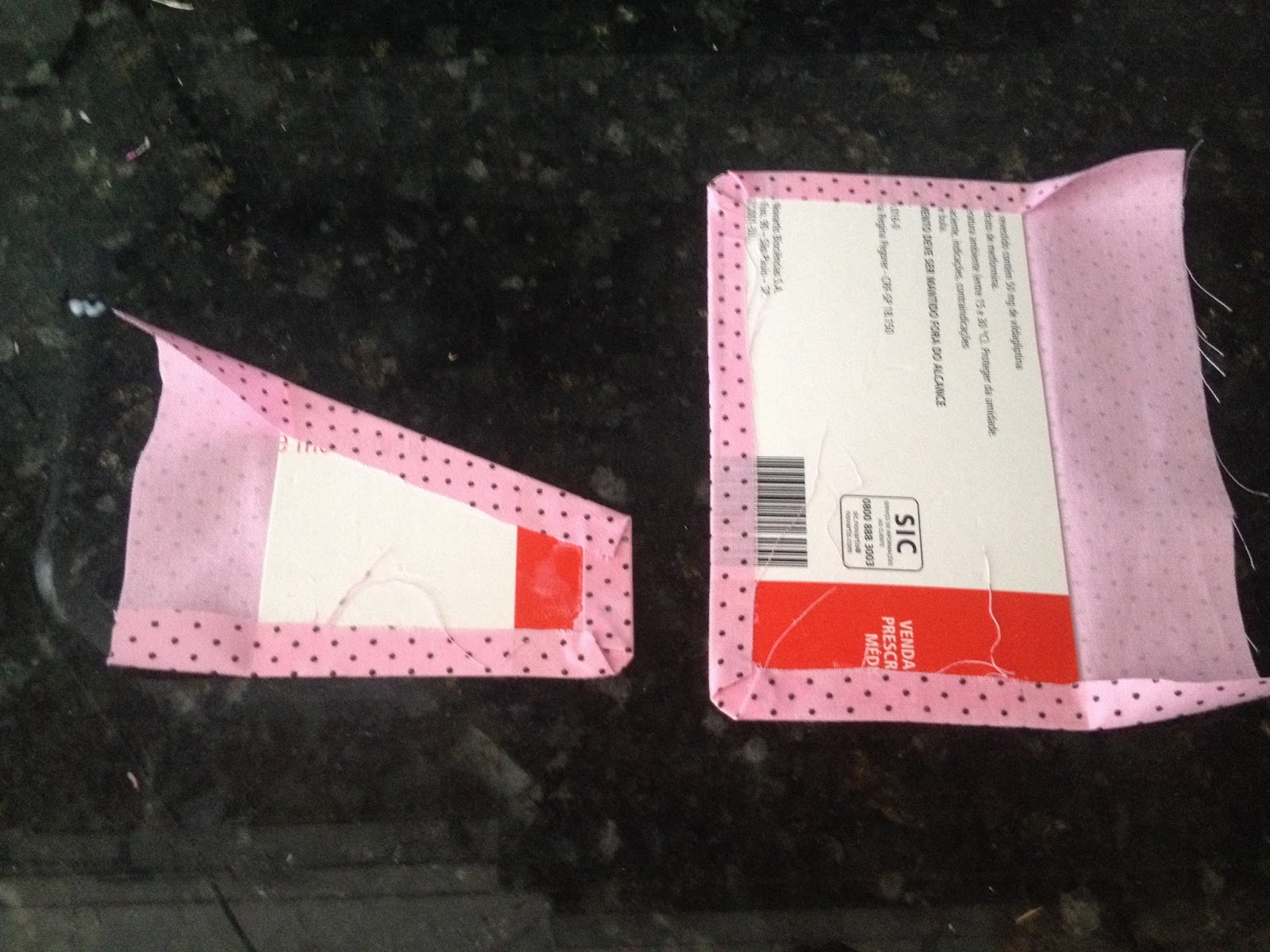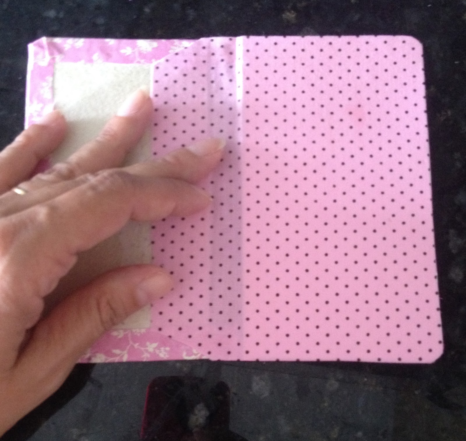 Pressione e deixe colar, coloque um peso por cima e fique monitorando para a cola não colar outras partes. Aproveite para colar o ultimo bolsinho cortado na diagonal que será porta cartões;