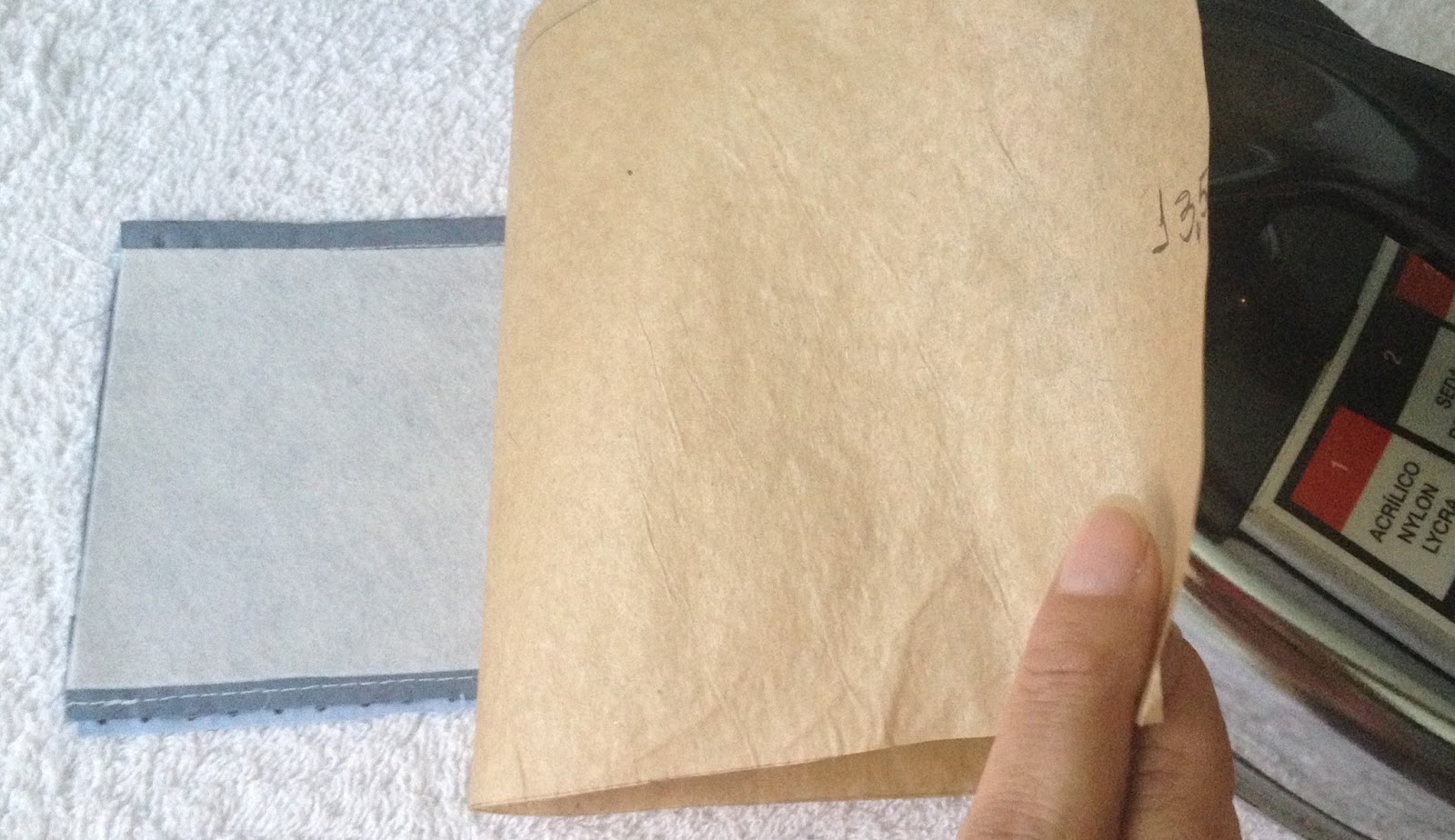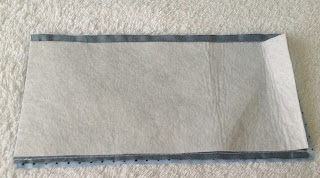 Agora recorte um pedaço de entretela colante, a medida do bolso deixando a parte da costura de fora;
