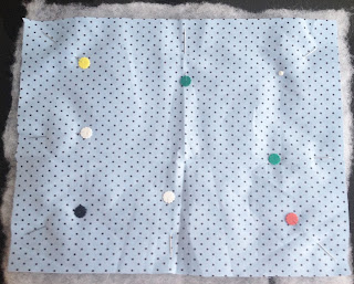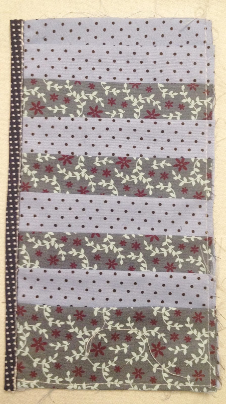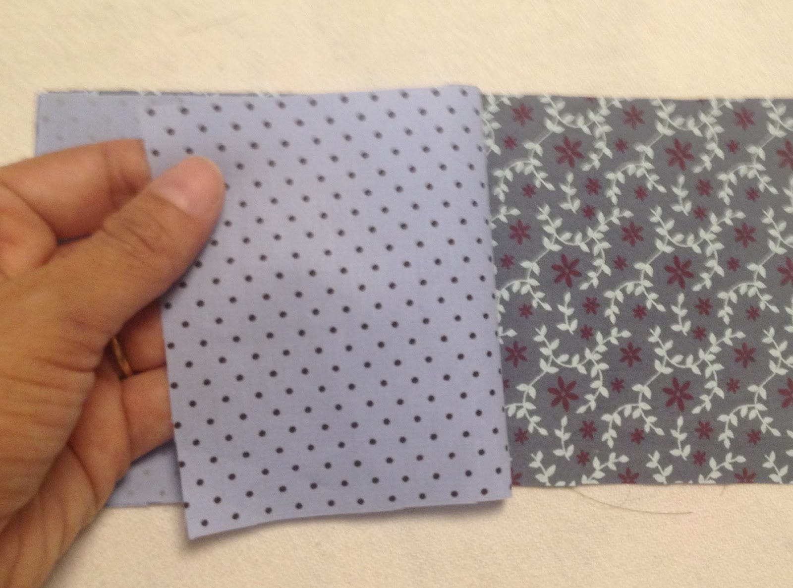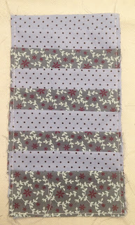 Agora no tecido de 22x20cm que foi passado vá colocando os retângulos pequenos que vc acabou de passar e desvirar;