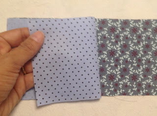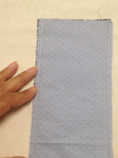 Para o bolso que ficará por cima do bolso do zíper recorte os tecidos duas vezes 10x20cm, coloque um de frente ao outro e passe uma costura nas duas partes;