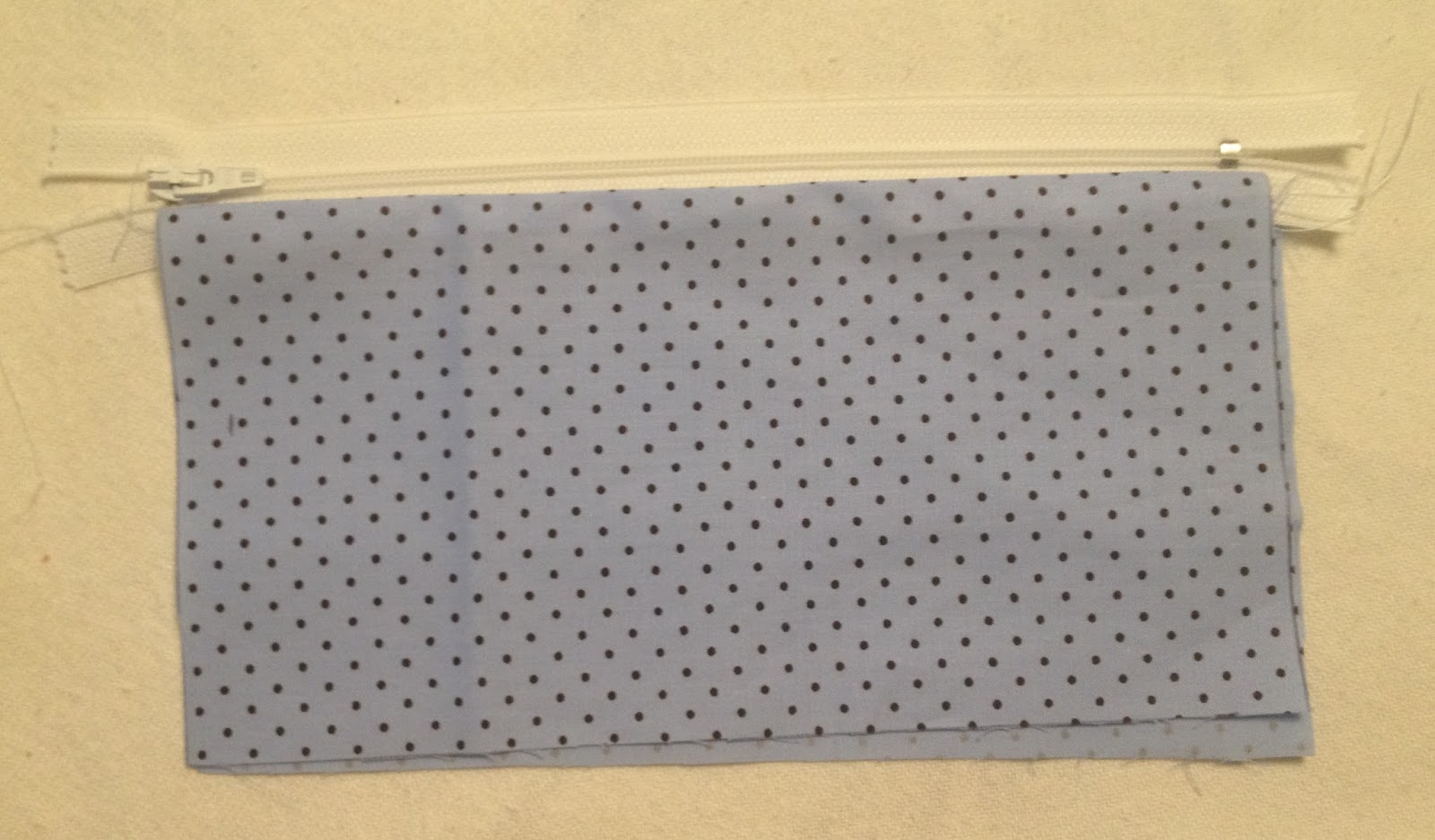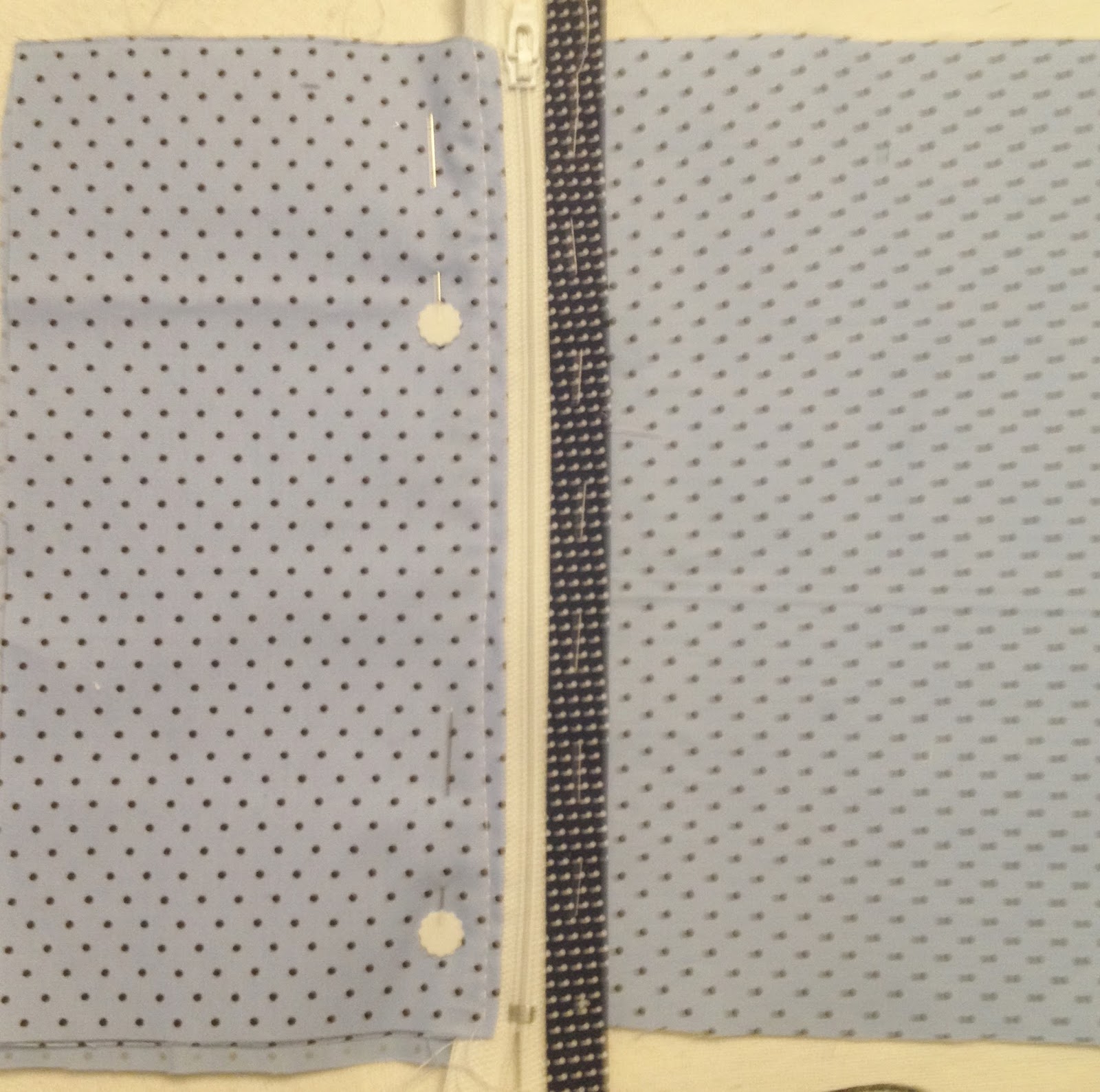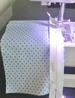 Depois de cortar o bolso do zíper, alinhave o zíper em uma extremidade, coloque a outra parte do tecido por cima ficando direito com direito e passe a costura no zíper;