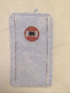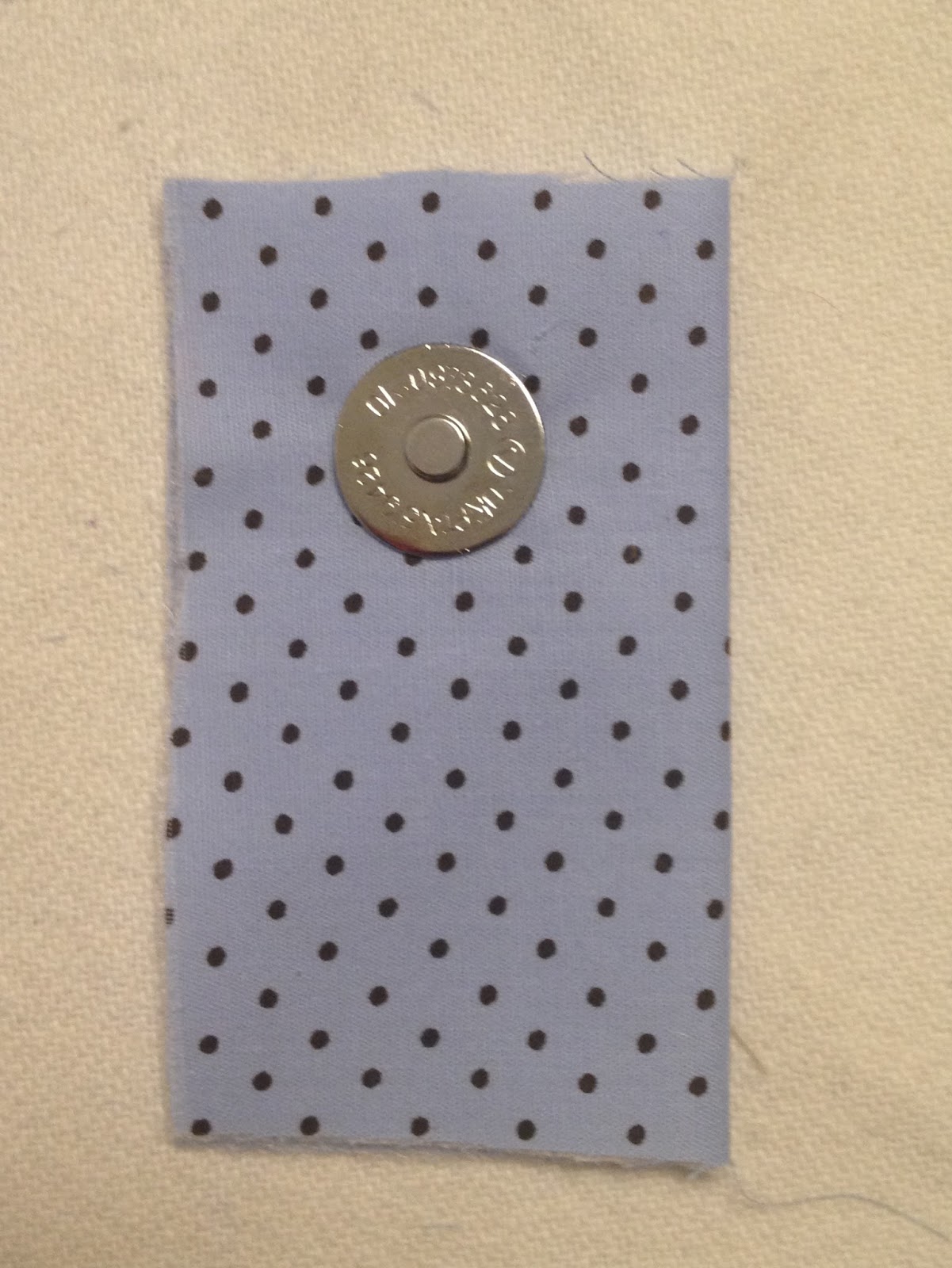O tecido 8x10cm coloque a manta por baixo, passe o ferro para que ela grude, depois do avesso dobre ao meio centralize o botão imantado ou de pressão e fixe como mostra a figura;