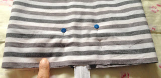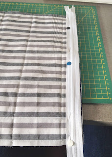 Pegue o zíper que deve ser um pouco maior que 30 cm, alfinete em uma extremidade e alinhave à mão junto com o tecido que acabou de alfinetar;