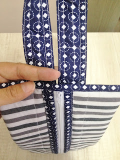 Agora sim passe uma costura para fechar o fundo do zíper, aproveite para cortar a sobra do zíper;