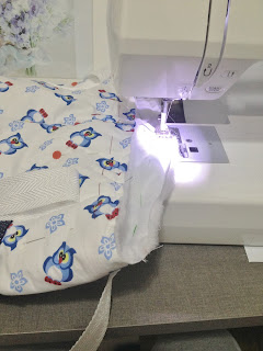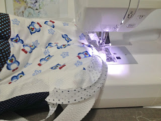 Coloque a manta por baixo e quilte passando a costura entre as alças e parte do fundo;