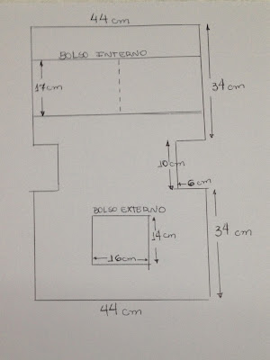 Corte  a parte de baixo para sobrepor na bolsa, precisa ficar um dedo acima do bolso externo,;