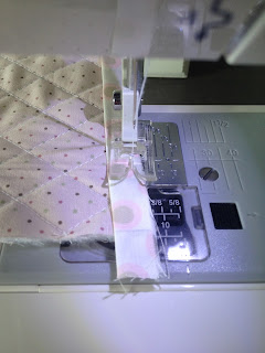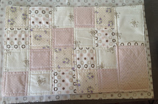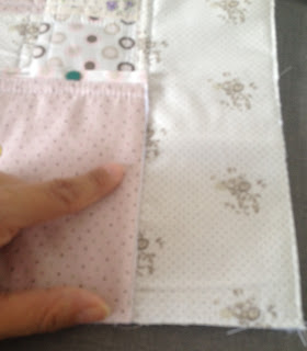 Coloque a manta por baixo, alfinete e vá passando a costura por cima dos quadrados segurando o tecido na manta;