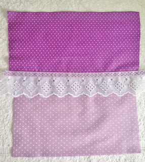 Para a parte de fora corte dois padrões de tecidos do mesmo tamanho do forro e entre a costura da emenda costure o bordado ou renda;