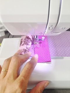 Passe uma costura reta no meio onde foram costuradas as tiras;