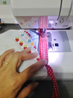 Coloque uma tira de viés de um dos lados para poder pendurar;