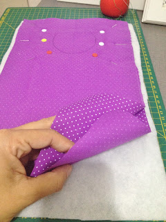 Alfinete os dois tecidos um de frente para o outro e por último a manta;