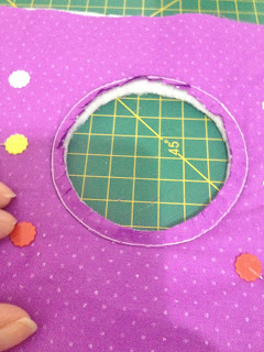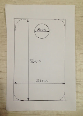 Na parte superior do avesso risque um circulo com régua ou um copo, cinco centímetros para baixo;