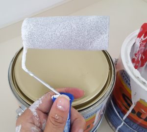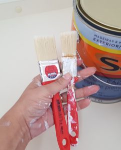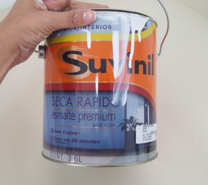 Não tenho pistola de tinta e nem grandes experiências com pintura de móveis, então decidí pelo velho pincel e rolinho de espuma.