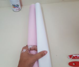 Nem todas as prateleiras eu pintei de branco, algumas eu vou utilizar o papel contact branco e o rosa, também estou pensando no fundo de algum armário forrar com tecido estampado.